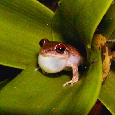There are several species of tree frogs in the Virgin Islands. Their calls (mixed with those of insects) provide a musical background to the night, especially after an early evening rain shower. Male frogs call to attract females for mating.