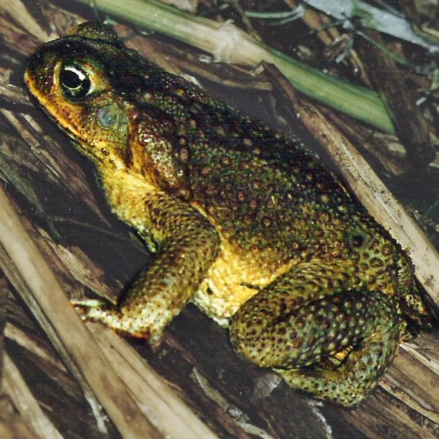 Reaching a body length of up to ten inches and a weight of up to two pounds, the cane toad is one of the largest toads in the world. Native to South and Central America, these toads (sometimes called sugercane toads) are now found throughout tropical and sub-tropical regions everywhere sugar has been grown.