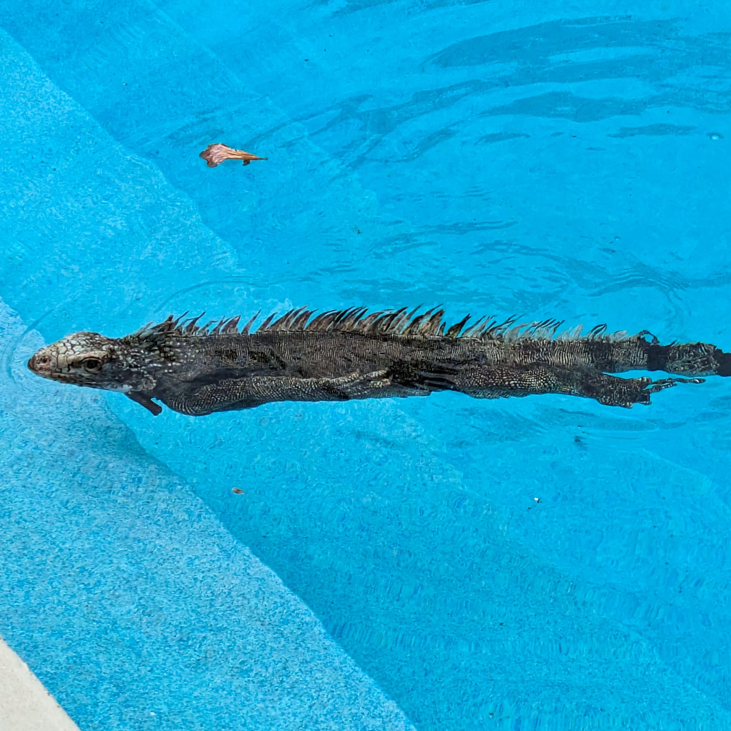 Peaceful and non-confrontational by nature, iguanas can be quite formidable when threatened. They are capable of delivering a painful bite or striking with a whip-like motion of their roughened tails. Iguanas can often be closely approached, especially at some hotels and resorts. However, caution and common sense should be used. Getting smacked by a large adult iguana’s tail is not an experience many would want to repeat.
