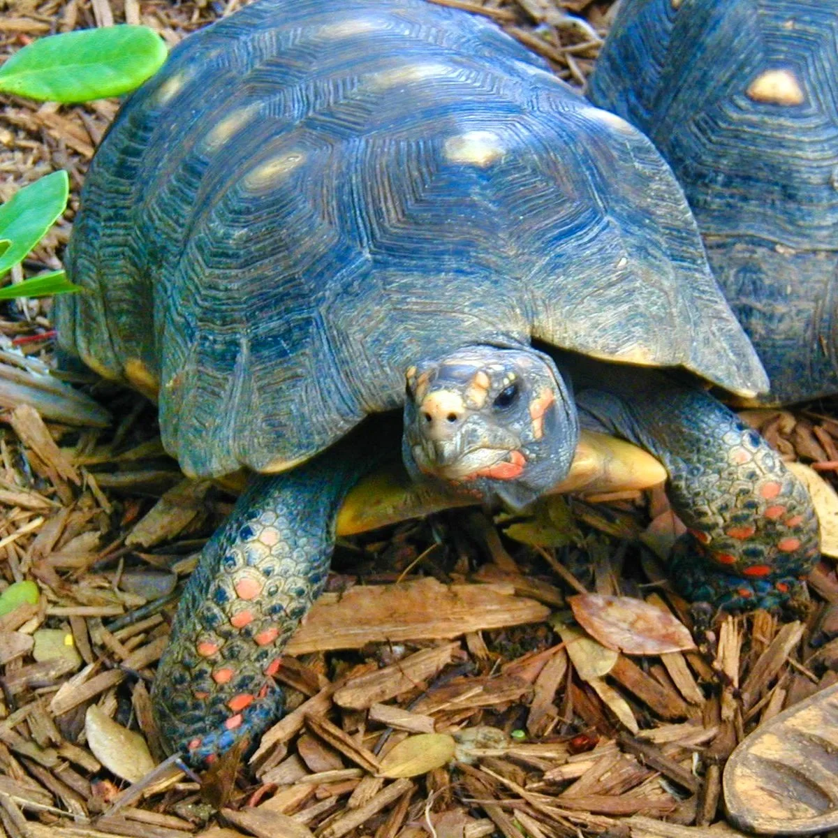 Also known as morocoy, the red-footed tortoise is the only non-marine turtle native to the Virgin Islands. It occurs throughout much of tropical South America as well as many islands in the Lesser Antilles.